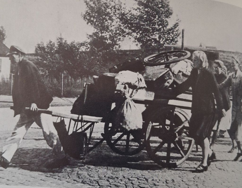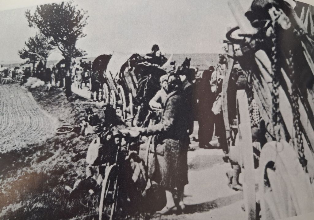 Dann zogen wir, es war neun Uhr, aus dem Ort. Wir hatten unsere Nachbarn mit auf unserem Treckwagen. Als wir aus dem Ort fuhren, sahen wir eine Familie, die keiner mitnehmen wollte.