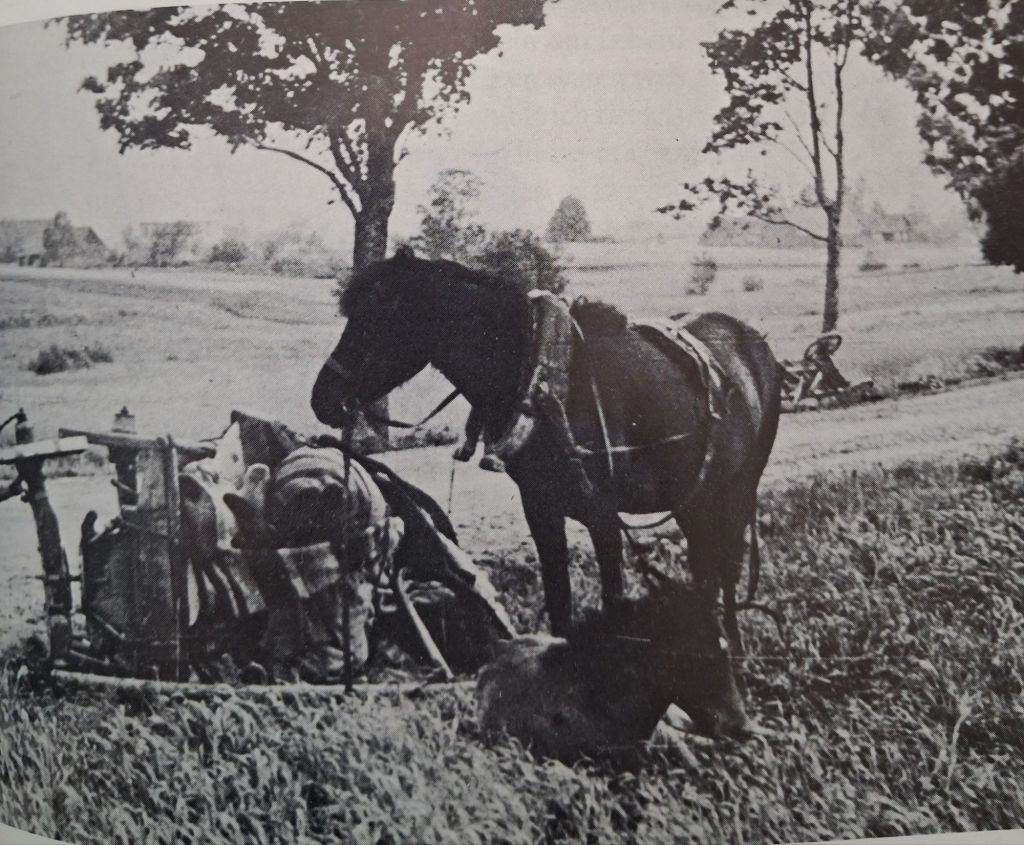 In der Nähe stand ein leerer Wagen mit zwei Pferden davor. Den holte mein Vater, wir luden das Notwendigste auf und auch meinen Bruder Karl Heinz, da er zu dem Zeitpunkt noch lebte. Die Nachbarsfamilie stieg auch mit auf. Ich lief mit meiner Schwester auf dem Arm in das Dorf zurück, aus dem wir gekommen waren.