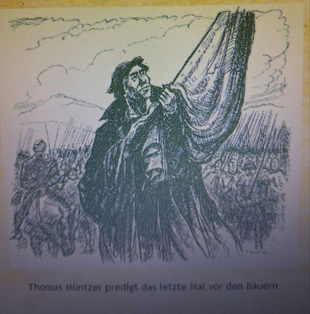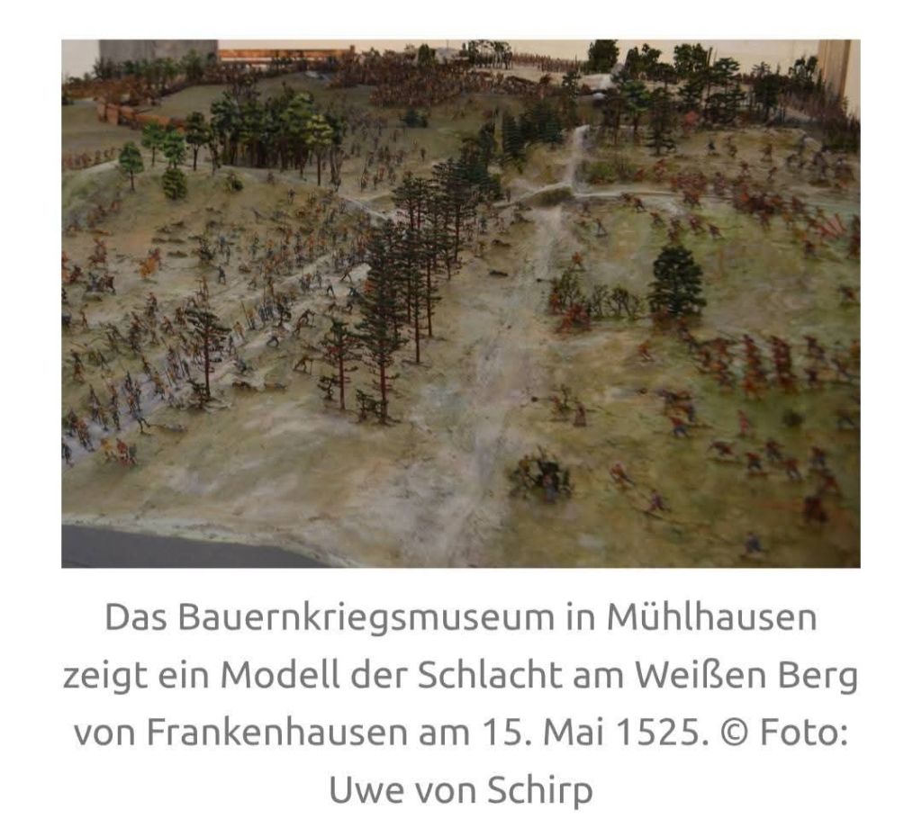 In der Schlacht bei Frankenhausen töteten die besser bewaffneten Söldner Tausende von Bauern. MÜNTZER konnte zunächst fliehen und versteckte sich in einem Bauernhaus, wo er jedoch aufgestöbert wurde. Nachdem man ihn gefoltert hatte, wurde er wenige Tage später enthauptet.