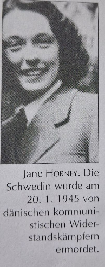 Da wäre der Fall Jane HORNEY. Die Schwedin wurde am 20. 1. 1945 von dänischen-kommunistischen Widerstandskämpfern ermordet.