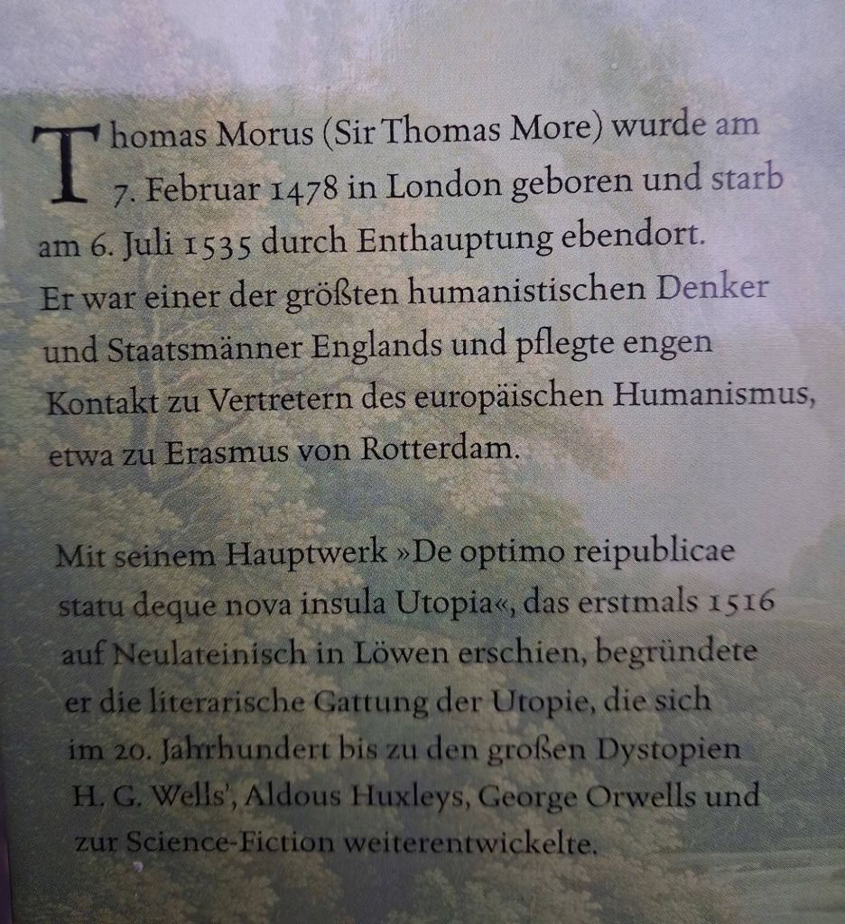 Im Kontext dieser Zeitepoche schrieb Sir Thomas Morus seinen Entwurf einer perfekten futurischen Gesellschaft (1516), dem wir übrigens den Begriff „Utopie“ als Gesellschaftsmodell verdanken.