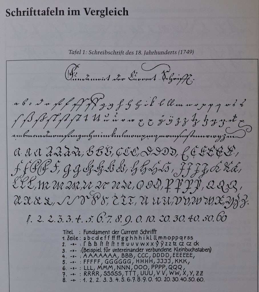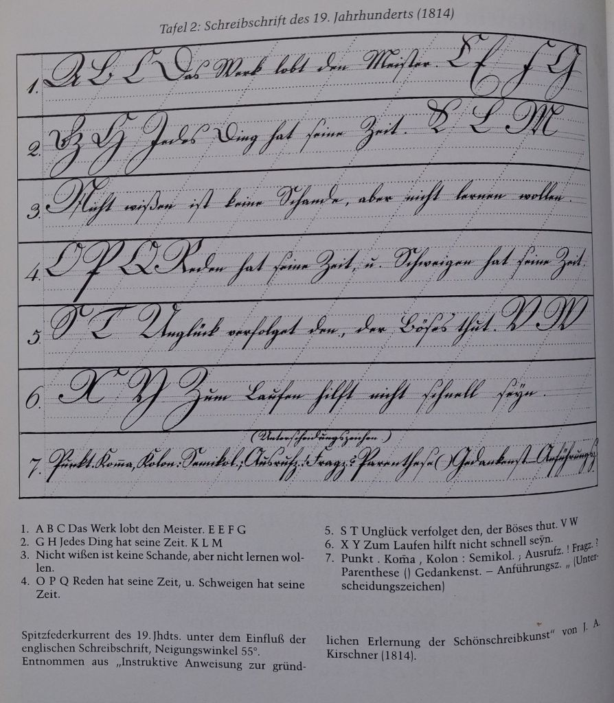 • Ende des 18. Jahrhunderts kam von England, das schon rund 100 Jahre vorher den Schritt von der gotischen zur lateinischen Kursive vollzogen hatte, eine neue Stilrichtung.