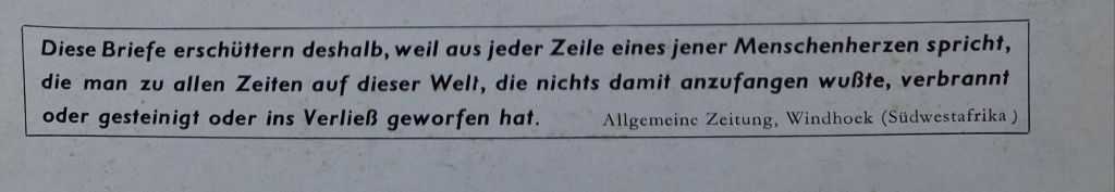 Leben gilt es oder Tod – Magst du scheitern oder landen: Immer bleibe selbst Pilot“ (England 20. Mai 1942 – aus „Ein Schicksal in Briefen“.)