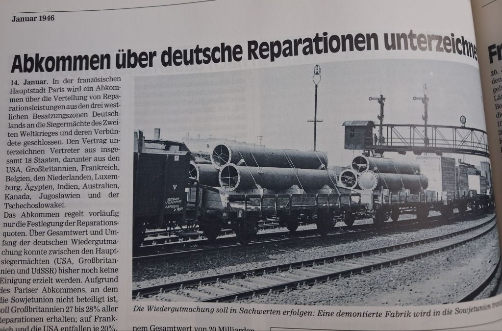 Vergangenheit sind einige Berechnungen angestellt worden, die das Ausmaß dieser gewaltigen, in der Weltgeschichte einmaligen Leistungen zu ermessen versuchen. Diesbezüglich sind vor allem die Arbeiten des Staats- und Völkerrechtlers Helmut RUMPF und des Volkswirts Karl BASSLER hervorzuheben. Auch darüber werden wir in den nächsten Tagen mehr lesen.