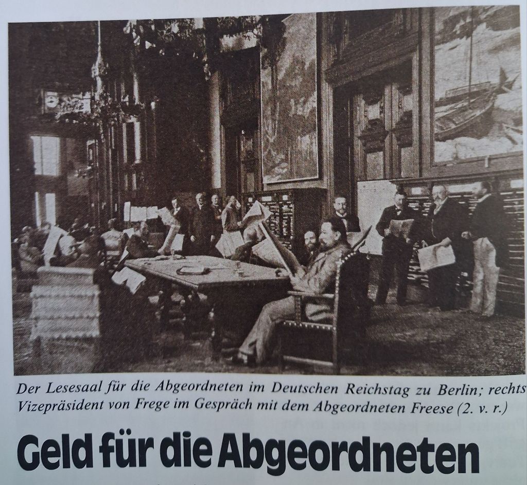 „Der Deutsche Reichstag in Berlin genehmigt gegen die Stimmen der Konservativen Partei einen Antrag, nach dem Abgeordnete „Anwesenheitsgelder“ erhalten sollen. Trotz dieses Antrages soll vom Prinzip der sogenannten Diätenlosigkeit nicht abgewichen werden.