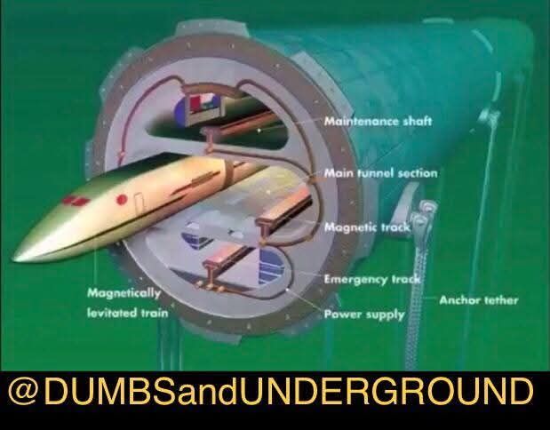 Ja, und wer weiß schon von unterirdischen Magnetschwebebahnen, die längst im Einsatz sind? Also ein elektromagnetisch schwebender Zug in einer unterirdischen vakuumversiegelten Röhre? Gegenüberliegende Magnetfelder im Fahrzeug werden mittels eines supraleitenden Schleifenkabels erzeugt, das in etwa eine Million Amper Strom führt.“ (siehe hier auch Hyperloop Elon Musk)