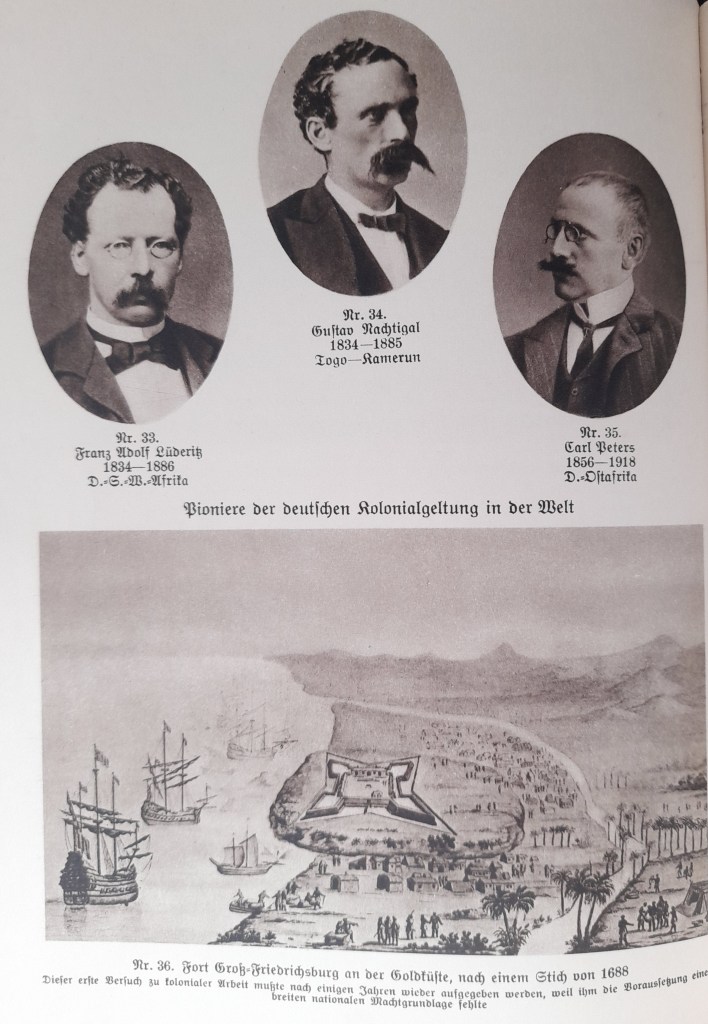 An die Pioniere der Kolonialgestaltung in der Welt und deutsche Siedler: Wohin immer in der Welt der Deutsche als Siedler seinen Fuß setzt seine herzhafte und arbeitsame Zwiesprache mit dem Grund und Boden, den er sich aussucht, oder der ihm gewiesen wurde, beginnt – überall hat ihm die Erde, wenn auch oft erst nach harten Mühen, mit Dank und Segen geantwortet, und kein zweites Volk kann sich rühmen, von seinen Siedlungserfolgen soviel dem eigenen Schweiß und der eigenen Liebe zur bebauten Scholle zu bedanken – sei es in der Heimat, sei es in der Fremde.