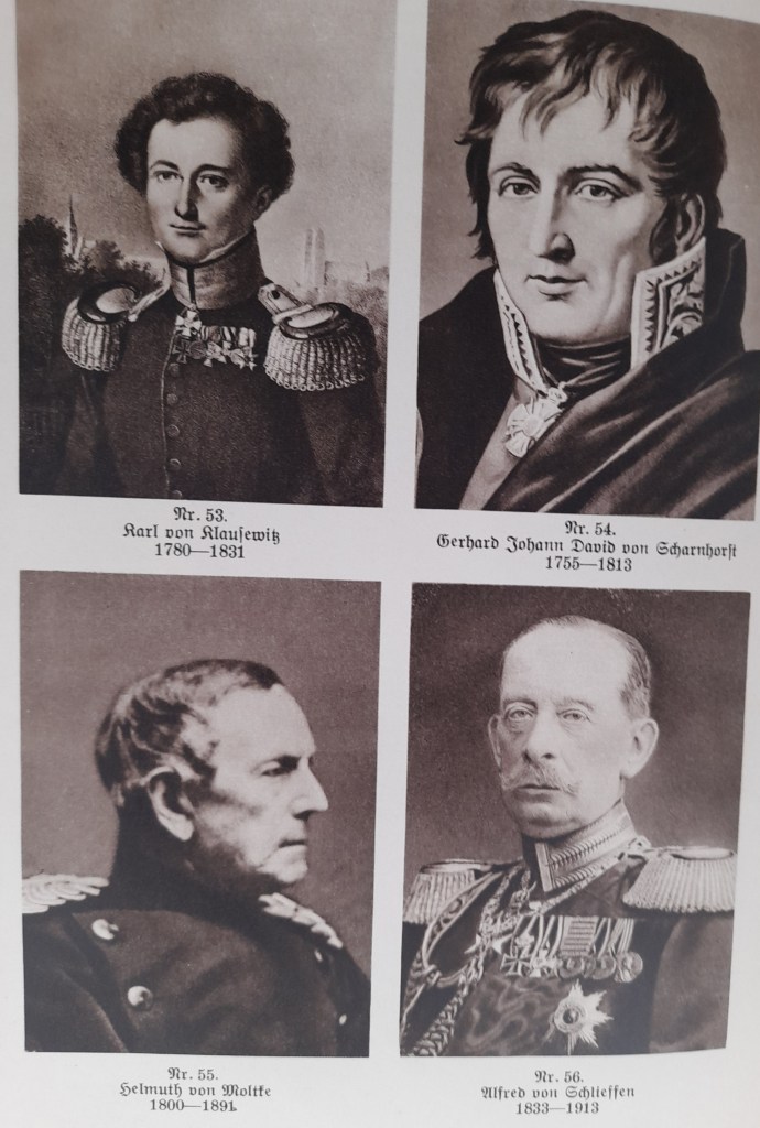 An die Weltgeltung des deutschen Soldatentums: Karl von Klausewitz (1780-1831), Gerhard Johann David von Scharnhorst (1755-1813), Helmuth von Moltke (1800-1891), Alfred von Schlieffen (1833-1913)