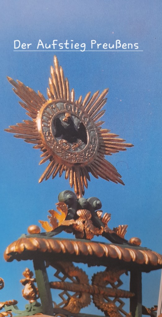 Es sind nur noch wenige Kapitel bis zum Eintritt in das Zeitalter Friedrich des Großen (1740-1786). Bis dahin lesen wir vom Großen Kurfürsten, der unter anderem die Anfänge des Beamtentums schuf, und weiter von den drei großen Kriegen um 1700.