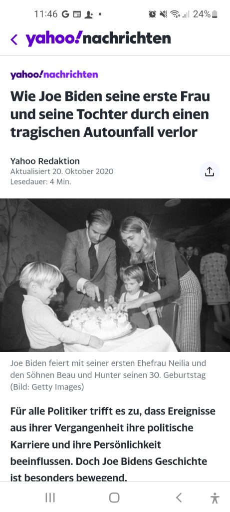 Nun, nachdem Jo Biden das „Handtuch wirft“, kann es ja nicht schaden, einen Rückblick auf ein Stück seines Lebens zu nehmen. Er war ja schon mal verheiratet. Es gibt sie, diese traurigen Geschichten, die auch zur Geschichte gehören…