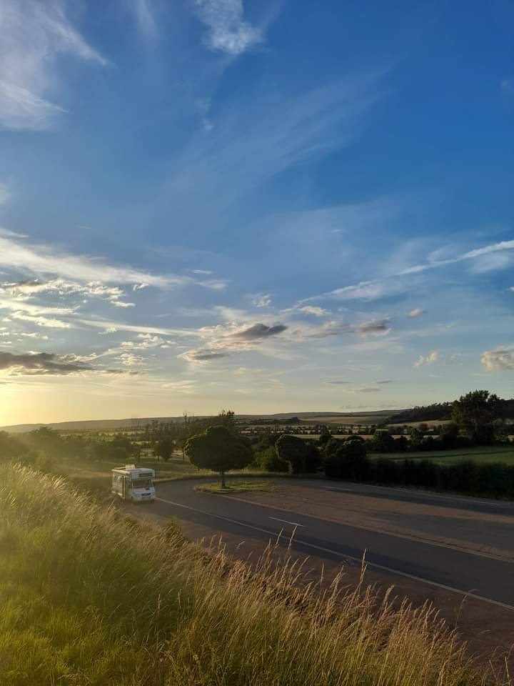 Noch ein bisschen sitzen wir draußen, aber sobald die Sonne weg ist, wird es merklich kühler, und dann „krabbeln“ wir schnell in unseren Bert.