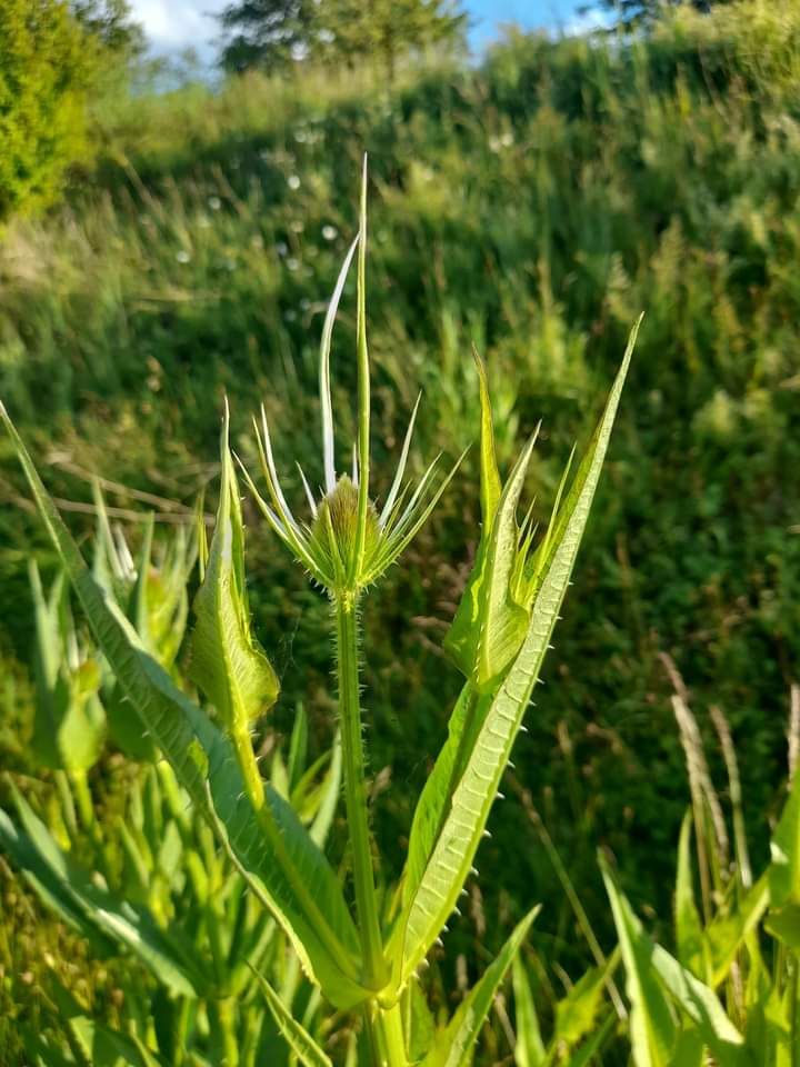 Am nächsten Morgen, mit aufmerksamen Blick in die Natur: Da wächst doch was Wunderbares vor unserer „Tür“ am Fuße des Kyffhäusergebirges beim Barbarossa – die Wilde Karde. Mancher kennt gewiss schon ihre besonderen Eigenschaften und weiß um ihre Heilkraft, insbesondere auch bei Borreliose.
