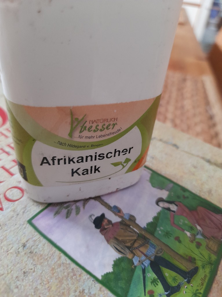 Bei Wassereinlagerungen, und das kam so gut wie nie vor, nahm sie hin und wieder eine Messerspitze „ Afrikanischer Kalk“ (Straußeneipulver) vor dem Frühstück, und alles war gut.