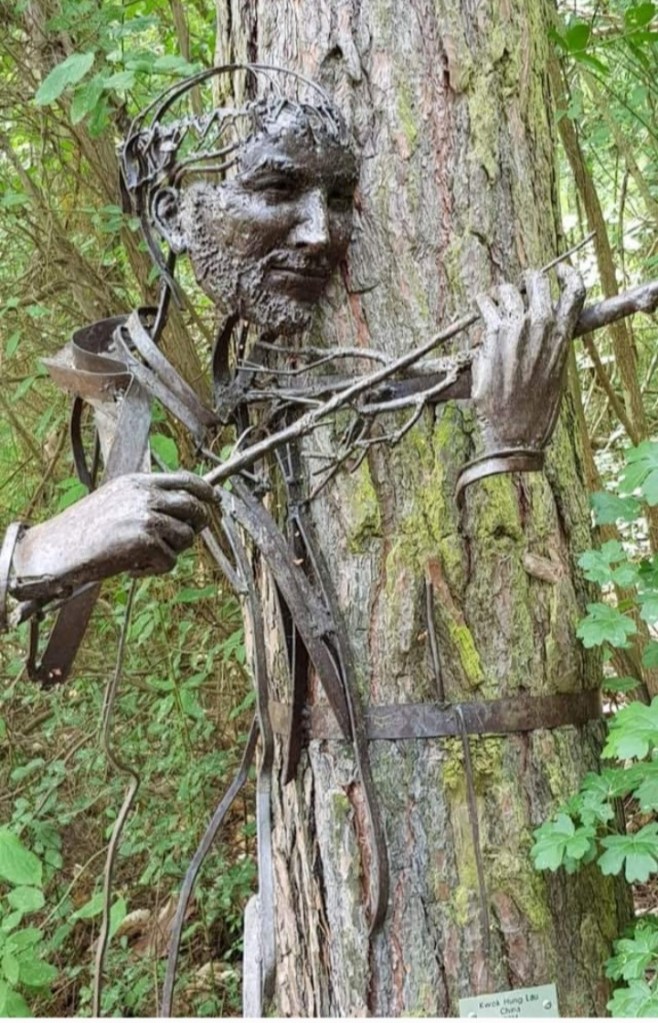 Das Foto des Geigers stammt vom Künstler Kwok Hung Lau und wurde auf dem Kunstwanderweg Kleinbreitenbach ausgestellt.