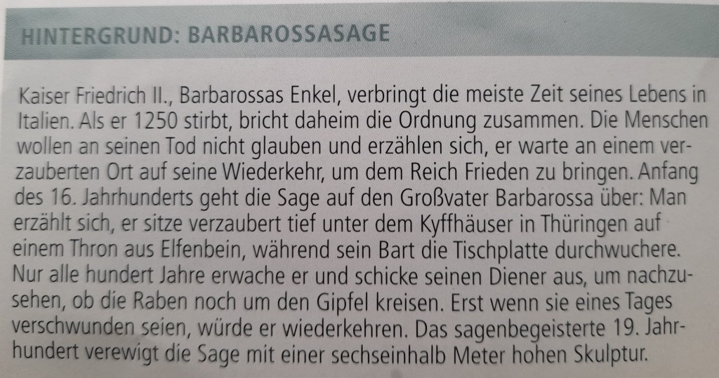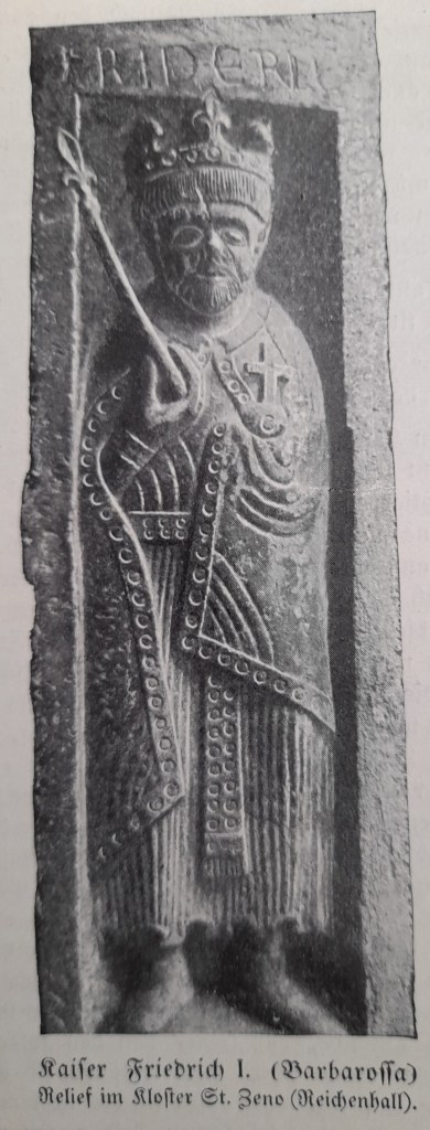 Die Erinnerung an ihn , ist im deutschen Volke nie erloschen. Auf ihn, auf diese echt deutsche Heldengestalt., hat es später im richtigen Gefühl die Kyffhäusersage von dem heimlichen, einst wiederkommenden deutschen Kaiser übertragen, die sich ursprünglich an seinen Enkel Friedrich II, den Sizilianer, geknüpft hatte.