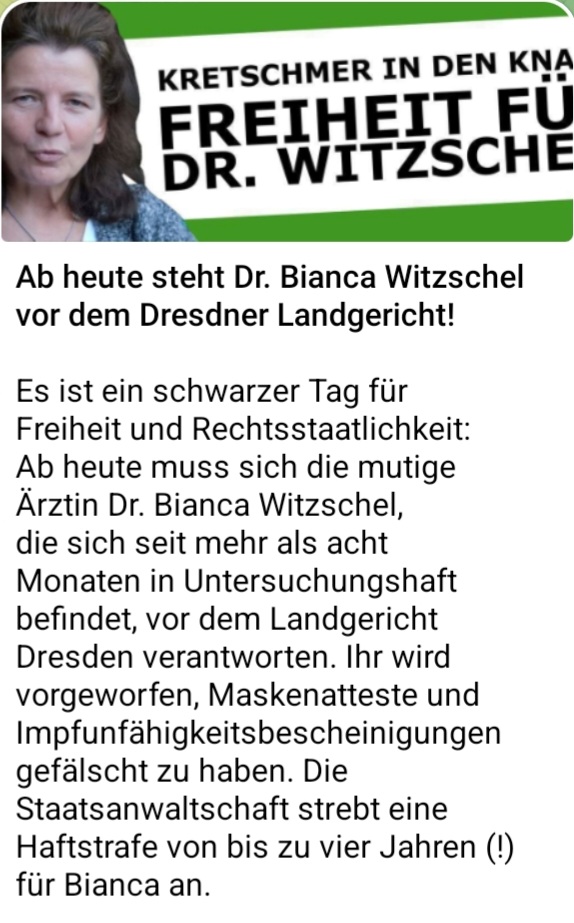 Ausgelöst, durch die anstehende Verhandlung gegen Dr. Bianca Witzschel.