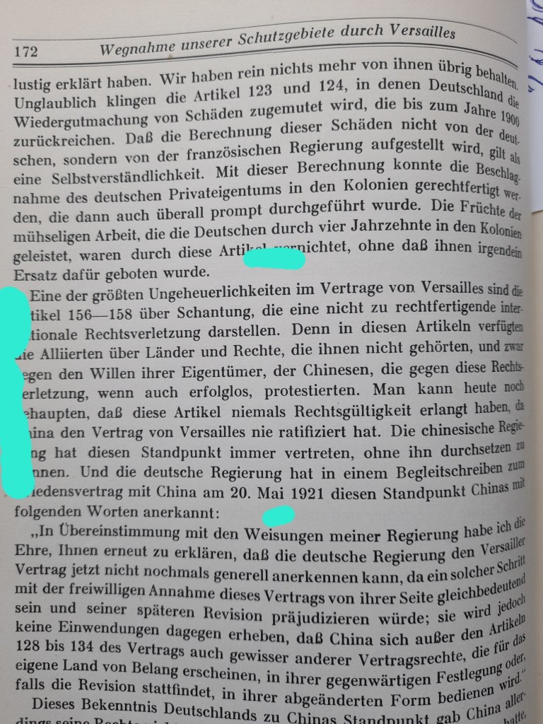„Die Not und die Armut begann bereits mit dem Abschluß des Vertrages von Versailles mit dem Gewaltverzicht rein deutscher Gebiete. Für die Gründung des polnischen Staates mußte Deutschland ein Fünftel seines Landes abtreten.