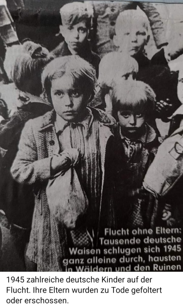 Ausgewiesen wurden mehr als 120000, die nichts mitnehmen durften und denen sofortige Hilfe gegeben werden mußte, geschehen im Westen durch Franzosen und Belgier und im Osten durch Polen. Von den Polen wurden eine Million Deutsche vertrieben, viele ermordet. „