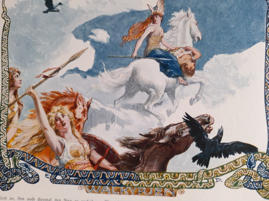 Sie küren die Wal, das heißt, sie bestimmen nach des Schicksals (der Nornen) unabänderlichen Satzungen, nach andern Sagen gemäss Odins Wunsch, diejenigen Helden, welche in der Schlacht fallen sollen, und die Erschlagenen tragen sie, aus dem Todesschlummer sie weckend, empor nach Walhall auf ihren durch die Wolken sausenden Rossen.